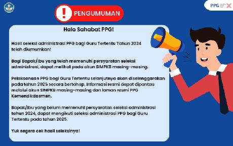 Hasil Seleksi Administrasi PPG Bagi Guru Tertentu Tahun 2024 Telah diumumkan..!